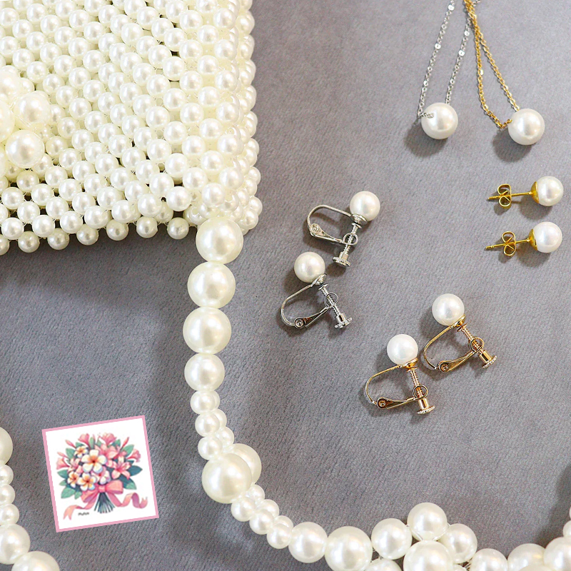 上品な輝きを、誰もが気軽に楽しむことが出来るよう、ピアスやイヤリング、ネックレスやパール調のスマホショルダーバッグなど、幅広いブランド展開をしております。